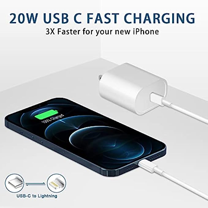 • 【Ultra-Fast Charging】 20W USB C fast charger with 6ft type c to lightning cord, charges iPhone 12 up to 50% in just 30 minutes, which saves more than 1 hour for you, when compared to the 5W original charger.