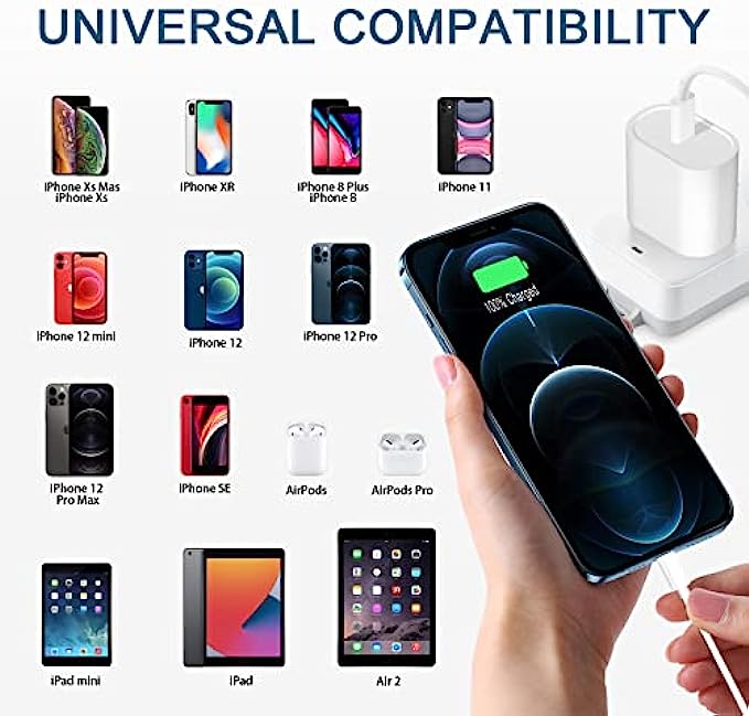 • 【Universal Compatibility】 The 20W PD phone chargers for iphone can fast charge iPhone 12/12 pro/12 pro max/12 mini/11/11 Pro/11 Pro Max/XR/XS Max/XS/X/8 Plus/8 , iPad Pro, AirPods Pro, and charge iPhone 7/7 Plus/6s/6s Plus/6/6 Plus/SE/5s/5/5c at standard speed.
