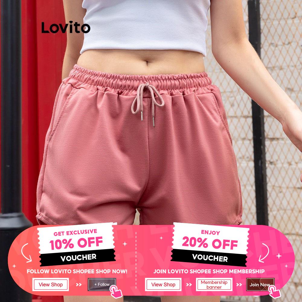 Lovito Casual Solid Drawstring Shorts for Woman L00242 (White/Black/Grey/Pink/Blue)